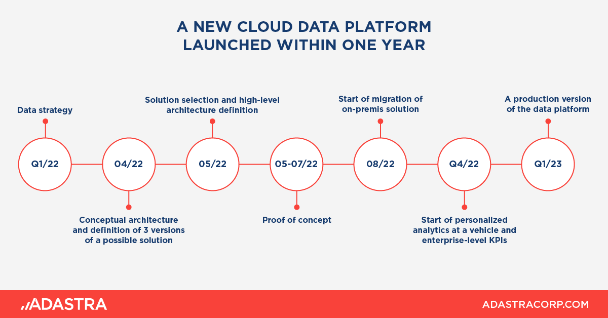 Na začátku stála datová strategie, následovala migrace do cloudu, základy datové analytiky pro vehikly a základy firemního reportingu, před dokončením je data lake a vše směřuje k datové demokratizaci.
