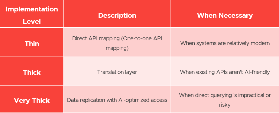MCP implementation varies based on the legacy system’s incompatibility level: