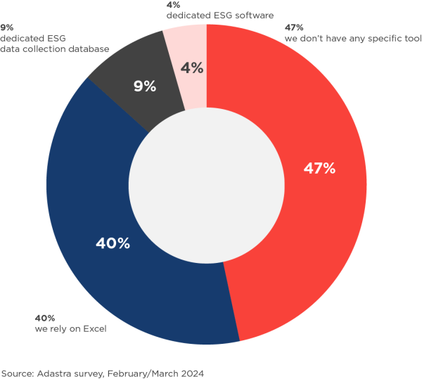 “As expected, a total of 47% of companies do not use any dedicated software yet. They have data all over the company and, as they say, their most common tools are paper and pencil,” says Radim Petratur. A total of 40% of companies still rely on Excel, while 9% use dedicated databases to collect ESG data. “Only 4% of companies have dedicated ESG software at the moment. There are already a number of good solutions on the market and companies will not be able to do without them in the near future,” adds Radim Petratur.