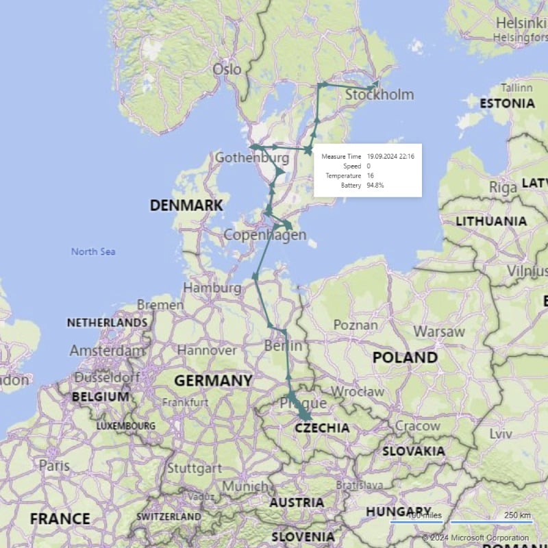 Adastra needed to securely transport a pallet containing essential materials for the Microsoft Fabric conference in Sweden. Ensuring not just shipment location visibility but also monitoring other factors critical to the quality of transportation was imperative. The Swedish conference represented a significant investment exceeding €100,000, and any delay or loss of shipment could jeopardize the event’s success.